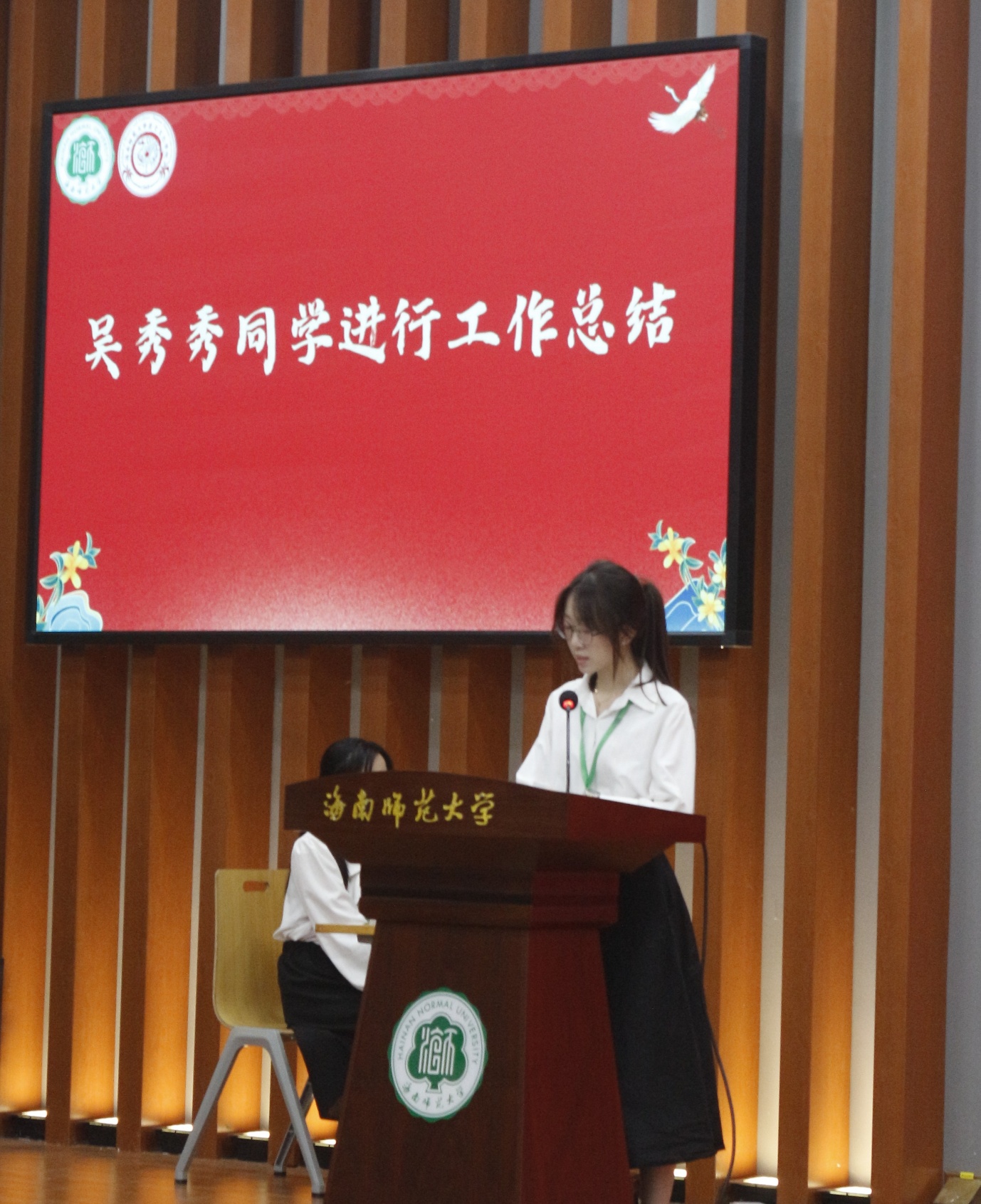 (吴秀秀同学正在进行工作总结)
