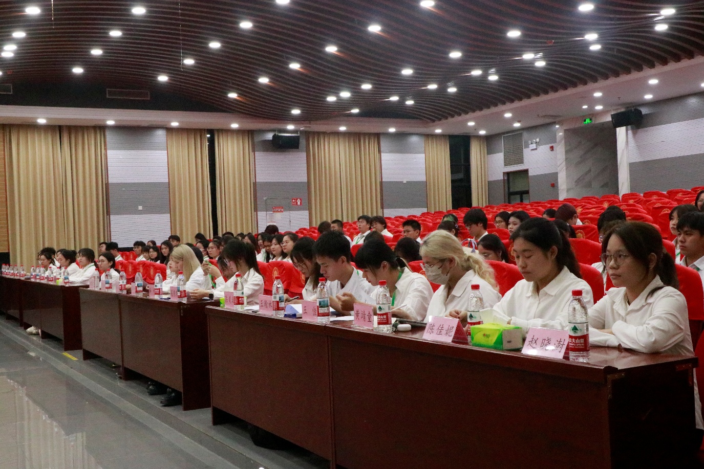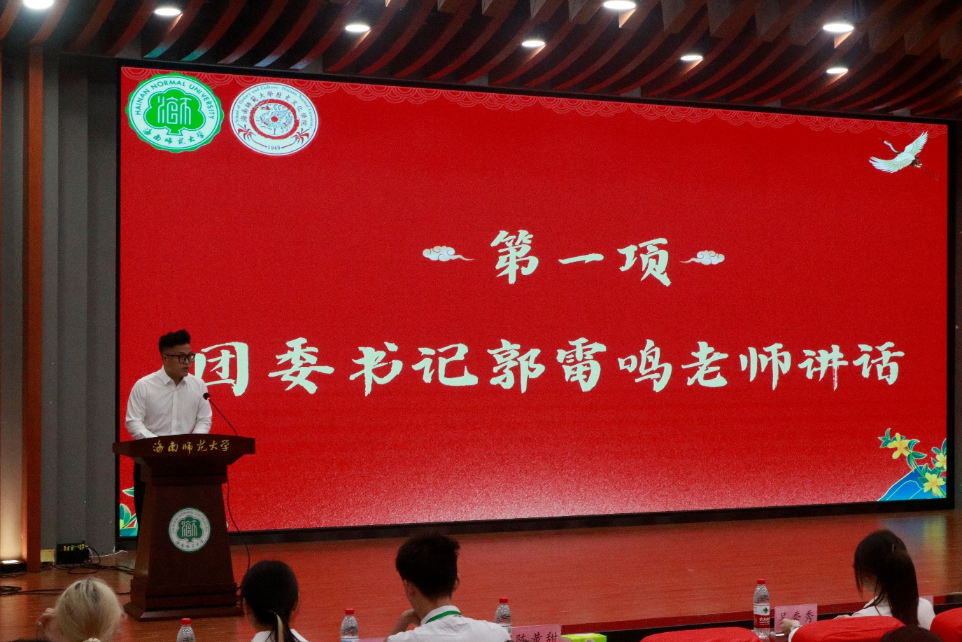 为了嘉奖在学生工作中表现突出的先进个人,激励学生干部以更饱满的热情投身学生服务工作。2025年5月10日19点30分,海南师范大学历史文化学院团委在图书馆报告厅举办了第五届学生干部受聘暨颁奖大会。出席本次大会的有:历史文化学院团委书记郭雷鸣老师、辅导员伊鑫迪老师以及全体学生干部。