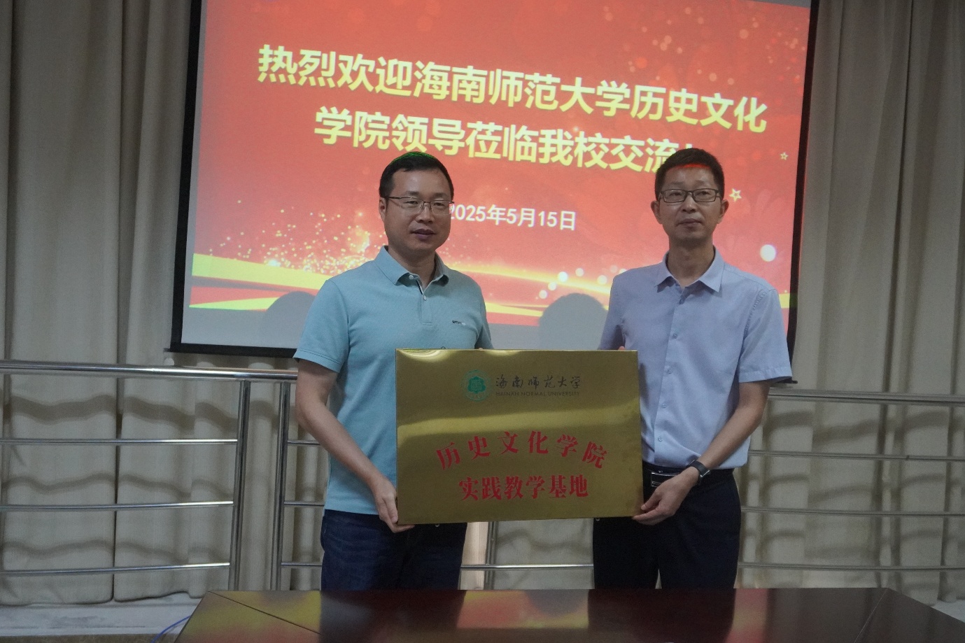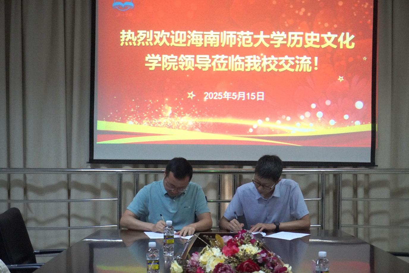 现场还举行了“海南师范大学历史文化学院实践教学基地”签约仪式。瞿朝辉副校长和王志强书记分别代表双方学校,郑重地在合作协议上签字。