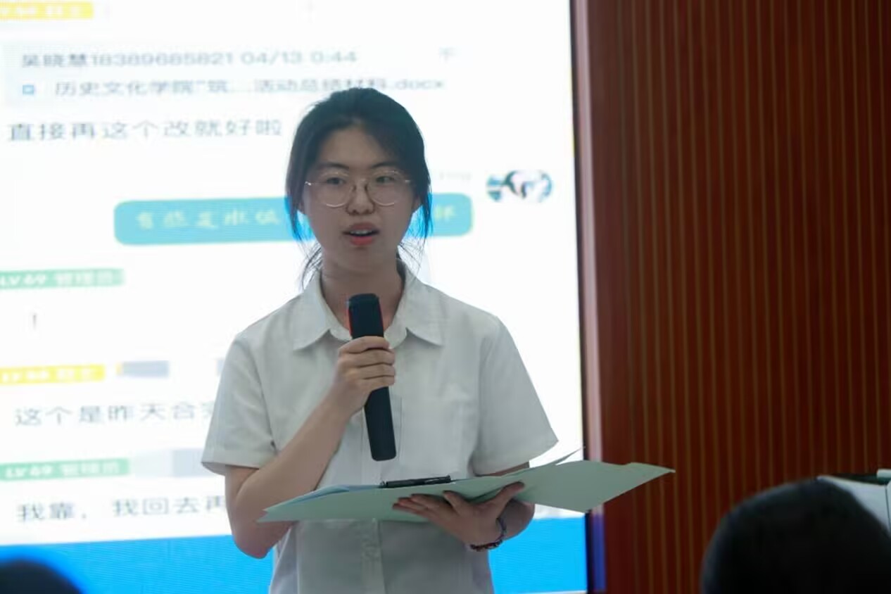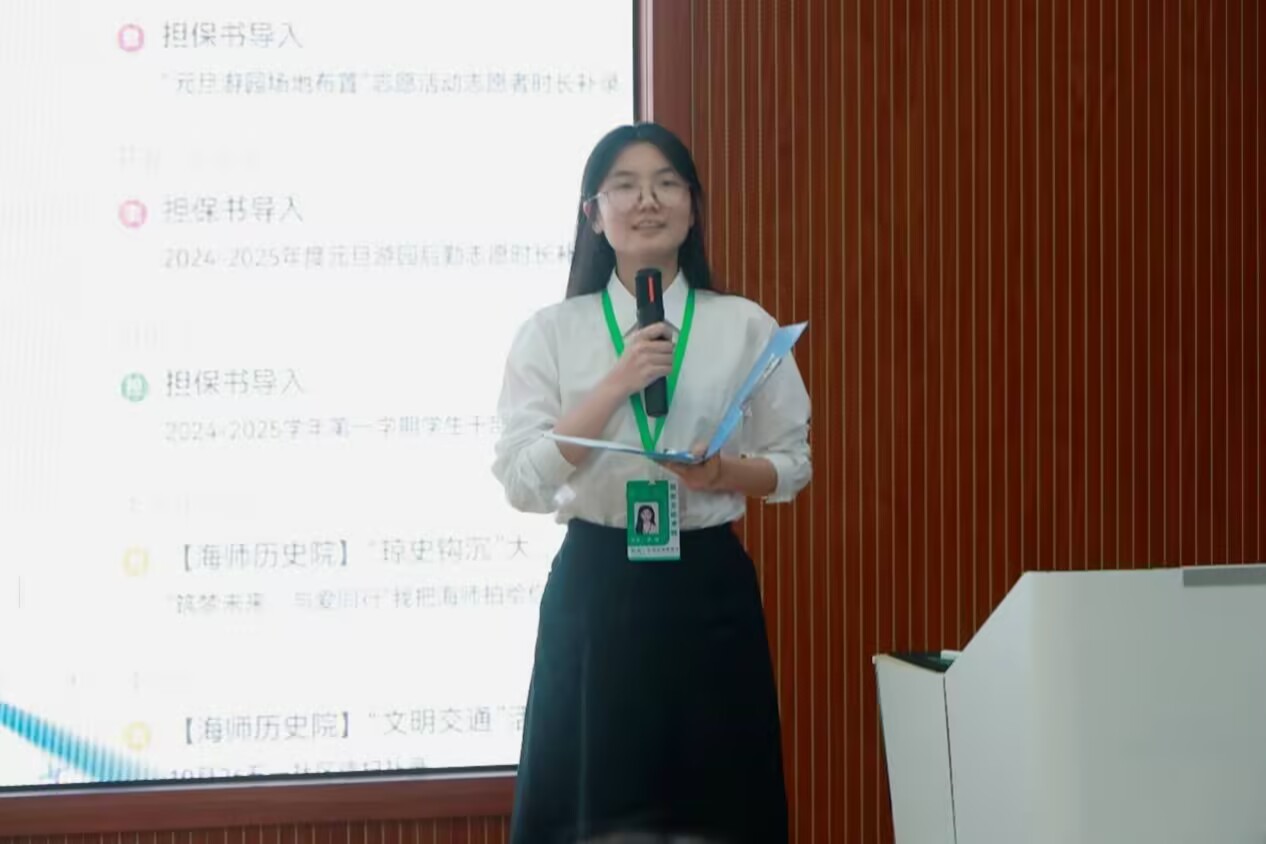为筑牢历史文化学院团委学生会工作基石,推动学生干部换届工作的圆满完成,海南师范大学历史文化学院团委学生会直属各部门竞聘大会于5月6日14点整在马克思主义学院201报告厅召开。参加此次大会的有:历史文化学院团委书记郭雷鸣老师;2023级车延之、陈莎莎、熊紫林、王永霞、路美琳、阎智鑫、孟虹孜、刘珊珊、仲亦依、陈玮洁;以及各部门学生干部等。