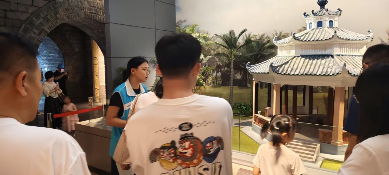 小朝阳们用生动的语言与扎实的知识带领观众“身临其境”,为观众们讲解了“南溟泛舸——南海海洋文明陈列”与“方外封疆——海南历史陈列”等主题展览。从华光礁一号沉船的打捞到海上的千年贸易;从朱庐执刲银印到南海的经略;从骑楼的兴建窥见移民文化的融合;从树皮布和黎锦窥见民俗文化的冰山一角…队员们以有趣的语言,生动的讲解,让原本陈列在展览柜的文物焕发生机,让观众在欣赏文物的同时也能更好理解海南岛的历史。