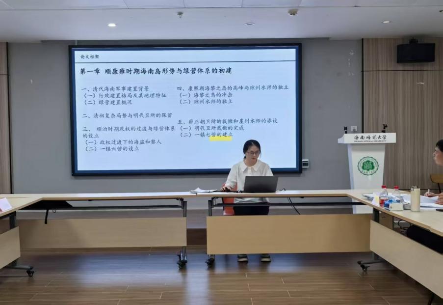 本次答辩会分上、下午两场,上午的答辩委员会主席为广州大学王元林教授,答辩委员会成员分别为海南大学温小平教授、海南师范大学隋丽娟教授、史振卿教授和赵从胜副教授。下午的答辩委员会主席为温小平教授,答辩委员会成员为广州大学王元林教授、海南师范大学赵克生教授、王志强教授和许淑杰教授。
