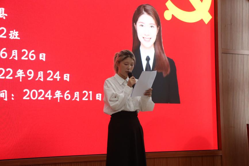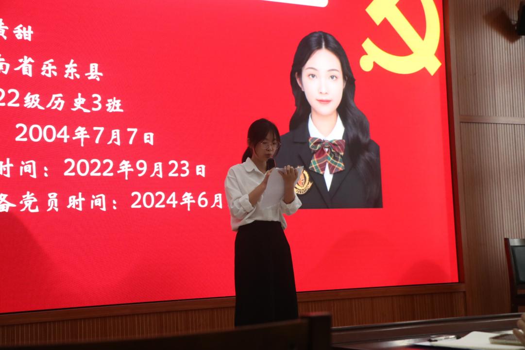 接着,入党介绍人介绍孙畅、吴秀秀、陈黄甜、周子艺、黄靖童、符晶晶、谭轩竺七位同志在预备期间的表现情况和教育考察意见。