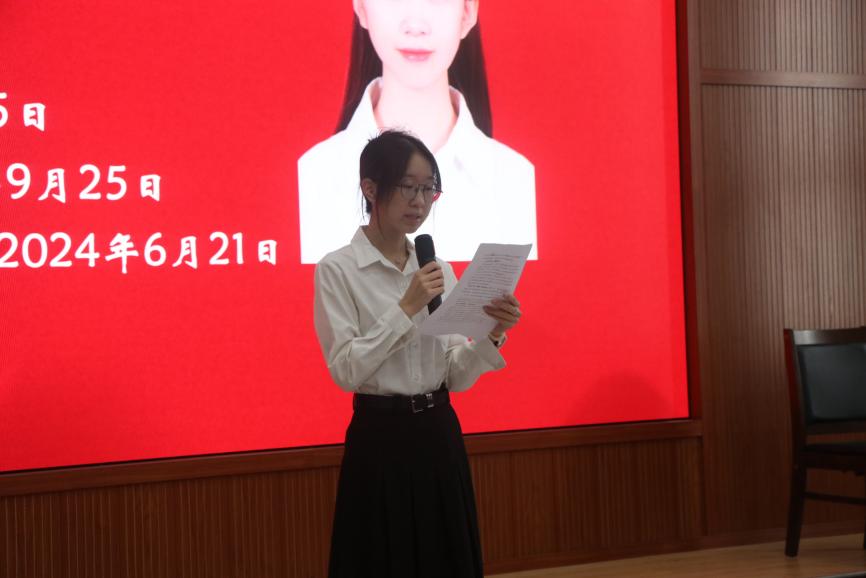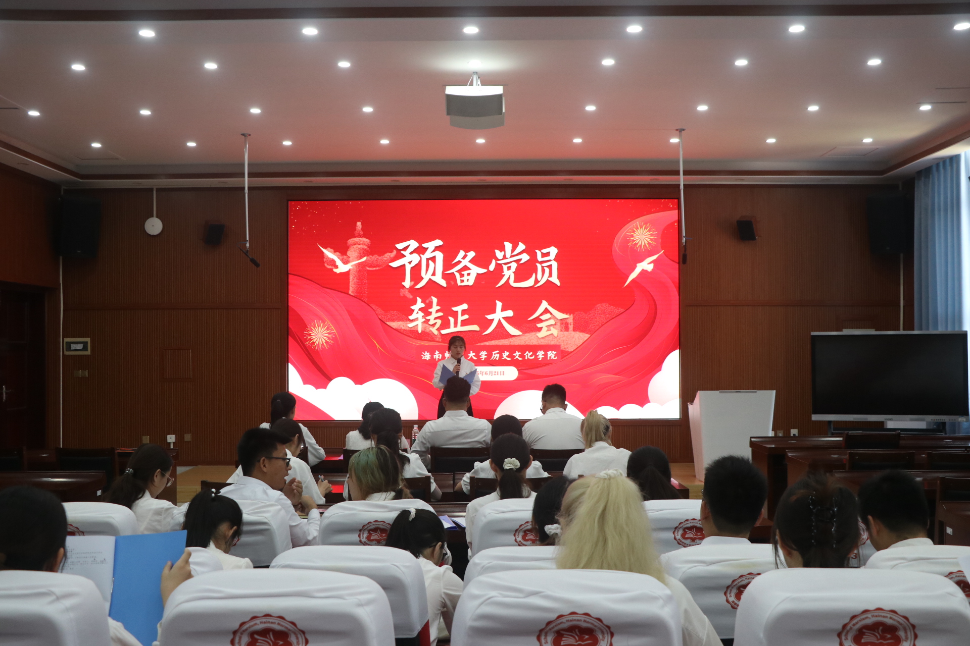 2025年6月21日上午10点,历史文化学院本科生党支部于马克思主义学院201报告厅召开讨论预备党员转正大会。参加本次会议的有:院党委副书记王国英、本科生党支部书记郭雷鸣及正式党员十二名、预备党员十三名,会议由陈莎莎同志主持。本次会议依据党支部发展党员工作计划,主要围绕预备党员孙畅、吴秀秀、陈黄甜、周子艺、黄靖童、符晶晶、谭轩竺七位同志的转正事宜进行讨论。