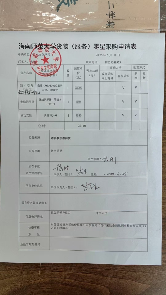 历史文化学院购置会议一体机的公示