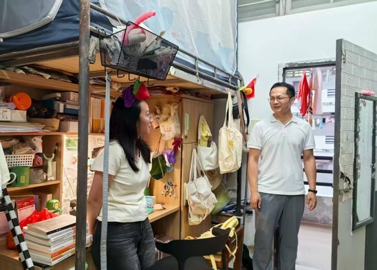新学期伊始,为进一步了解同学们的返校适应情况,倾听大家的真实需求,海南师范大学历史文化学院于2025年9月7日开展了本学期的宿舍走访工作,历史文化学院党委书记王志强、党委副书记王国英、副院长赵从胜、副院长武刚(挂职),辅导员郭雷鸣、伊鑫迪,班主任张登璨、吴晓美、史晓东、王奋举、程涛、孟二壮以及部分学生干部参与了本次活动,带着关怀与期许走进每一间宿舍,与同学们进行面对面的交流。
