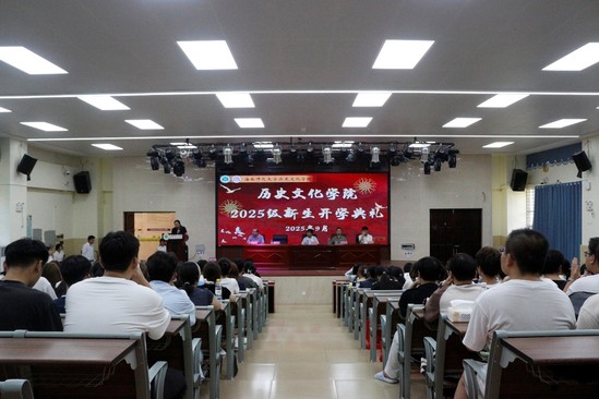 2025年9月15日14点30分,海南师范大学历史文化学院2025级新生开学典礼暨开学第一课于外国语学院一楼报告厅举行。参加此次典礼的有:历史文化学院党委书记王志强、院长赵克生、党委副书记王国英、副院长赵从胜、副院长武刚、学工办主任兼2025 级辅导员郭雷鸣、学院研究生教学管理科霍晴、辅导员伊鑫迪、学院本科教学管理科闫伟,2025级新生班主任叶丹丹、李强、林勰宇以及2025级全体新生。