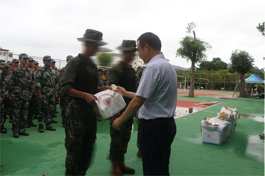 随后,为了表达对参训师生的关怀,学院还精心准备了慰问礼品。现场,领导老师们亲手将一份份满载着温暖与祝福的物品送到教官与学生手中,现场洋溢着温馨和谐的氛围。