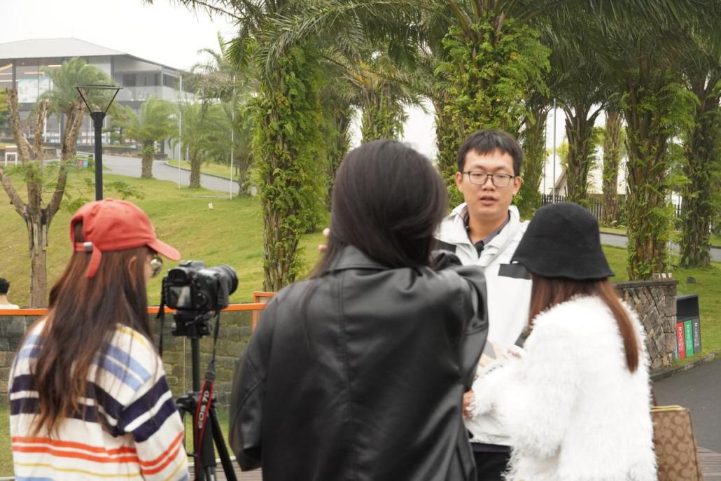 在云舍松涛中国村,同学们感受到了朴素自然之美与现代化智慧农业的碰撞出的火花。这里也是儋州市文旅融合的典型代表,是“乡村振兴”的重要窗口,除了涵盖“你好,热带水果”、乡村振兴等多个主题展馆和精致农业景观,还可以开展自然课堂、与田野“零距离”等丰富多彩的活动。通过对相关工作人员的采访,同学们不仅提升了新闻采访的实战能力,还对儋州市的历史、文化及社会发展有了更深刻的理解。