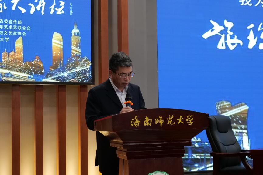 2023年12月18日下午3:00,旅琼文艺家大讲坛2023年第11讲于海南师范大学桂林洋校区图书馆一楼报告厅开讲。原解放军画报社社长、中国摄影家协会第九届副主席、中国摄影家协会第九届艺术摄影委员会主任、海南省旅琼文艺家协会顾问柳军主讲有关摄影的经历与体会。本次讲座主题为“培养一双发现的眼睛”。海南师范大学新闻传播与影视学院院长卿志军主持讲座,海南省文联副主席、省摄影家协会主席罗韬等嘉宾出席,海南师范大学新闻传播与影视学院21级新闻、广电、编导班与23级编导、中俄、表演班共三百余名师生作为观众聆听本次讲座。