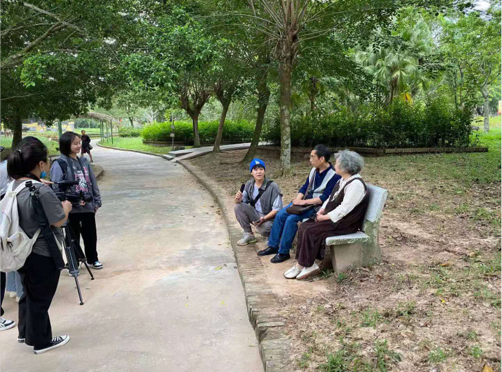 (学生采访红色娘子军纪念园游客)