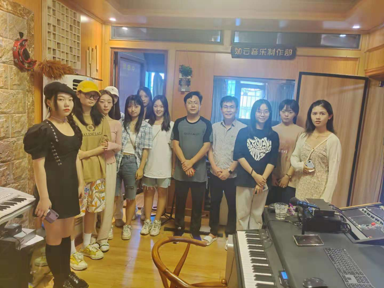 2021年6月15日我院18表演专业27名学生在吕永老师的带领下来到文海云音乐制作工作室进行专业录音课程交流学习。