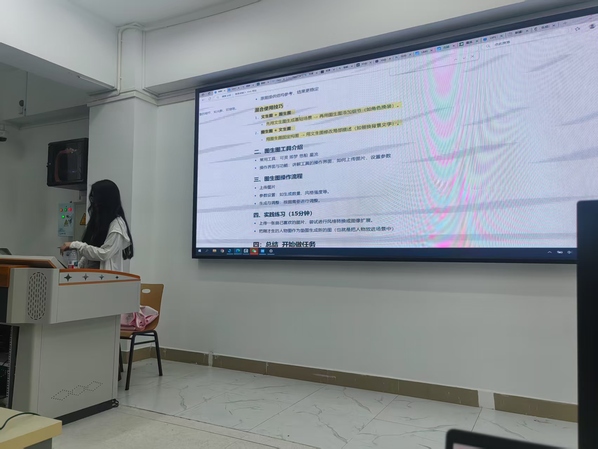 当影视创作遇上人工智能,会碰撞出怎样的火花?5 月 10 日,新闻传播与影视学院广播电视专业举办为期两天的AIGC(人工智能生成内容,Artificial Intelligence Generated Content)线下培训课程,来自 24 级广编专业的三位同学担任讲师,凭借自身学习和实践经验,不仅深入讲解AIGC 在影视创作各环节的操作细节,还带领学员实操人工智能平台,助力同学们解锁智能化创作新技能。