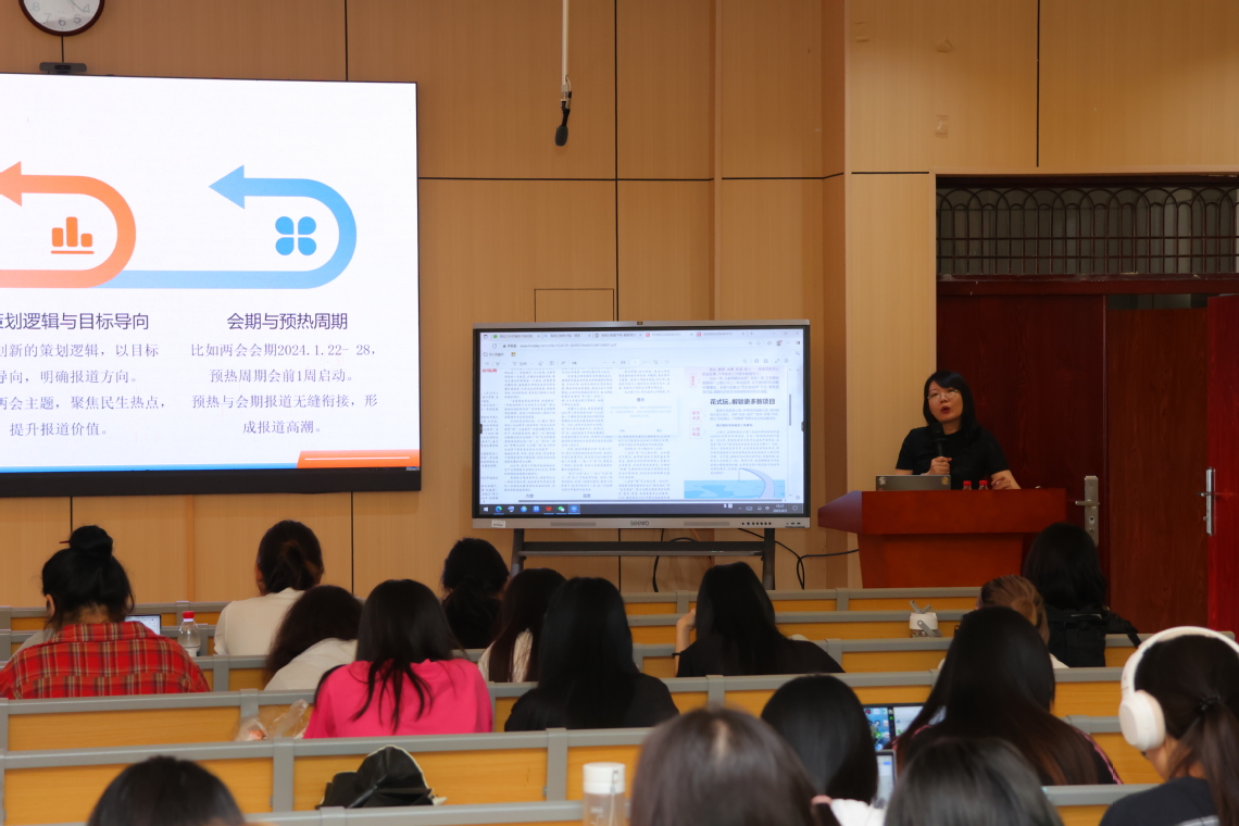 2025年6月5日上午10点,部校共建一流本科专业校外导师、海南日报一级记者、海南西部新闻中心副主任刘梦晓来我院为新闻传播学子授课。我院22新闻1班、22新闻2班、23新闻1班、23新闻2班等班级学生参加学习。