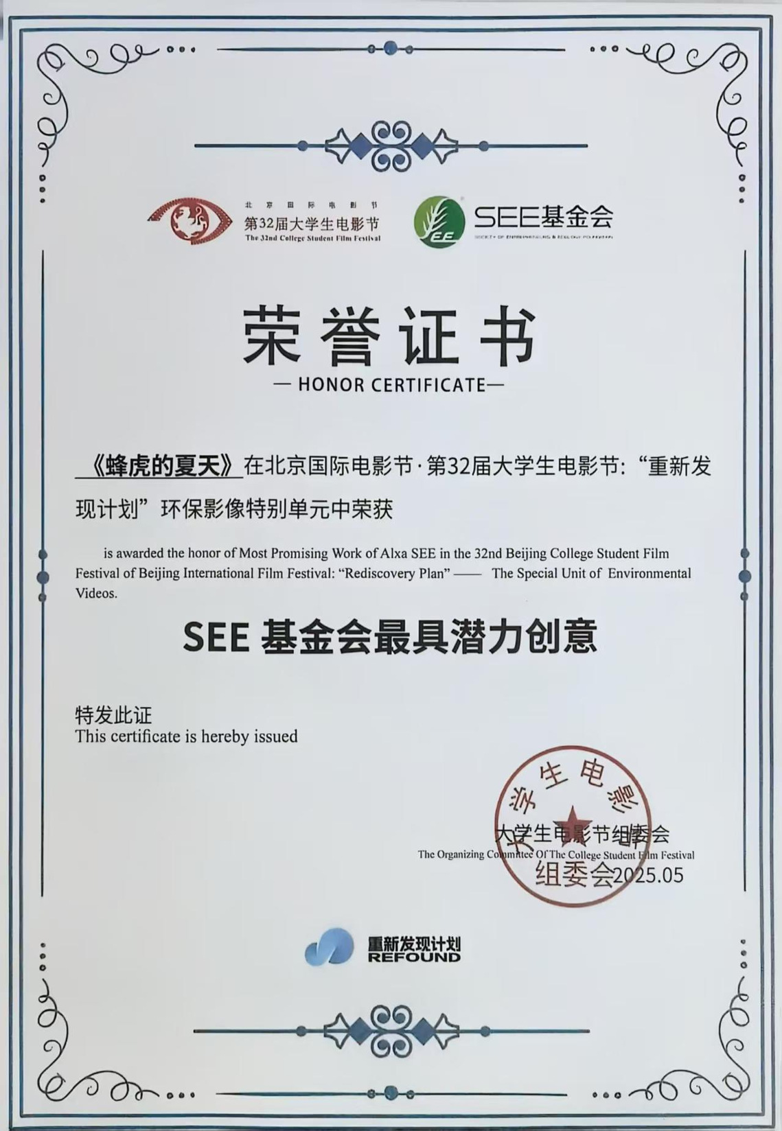 “重新发现计划”是北京国际电影节·第32届大学生电影节的特别单元,携手SEE基金会,作为本次电影节的重要组成板块,重新发现计划环保影像特别单元,展现了影像创作者对生态环境的关注与思考,构建了人与自然之间的对话桥梁,该单元共征集了近280部短片和短视频,经过严格评审,最终46部作品进入终审。