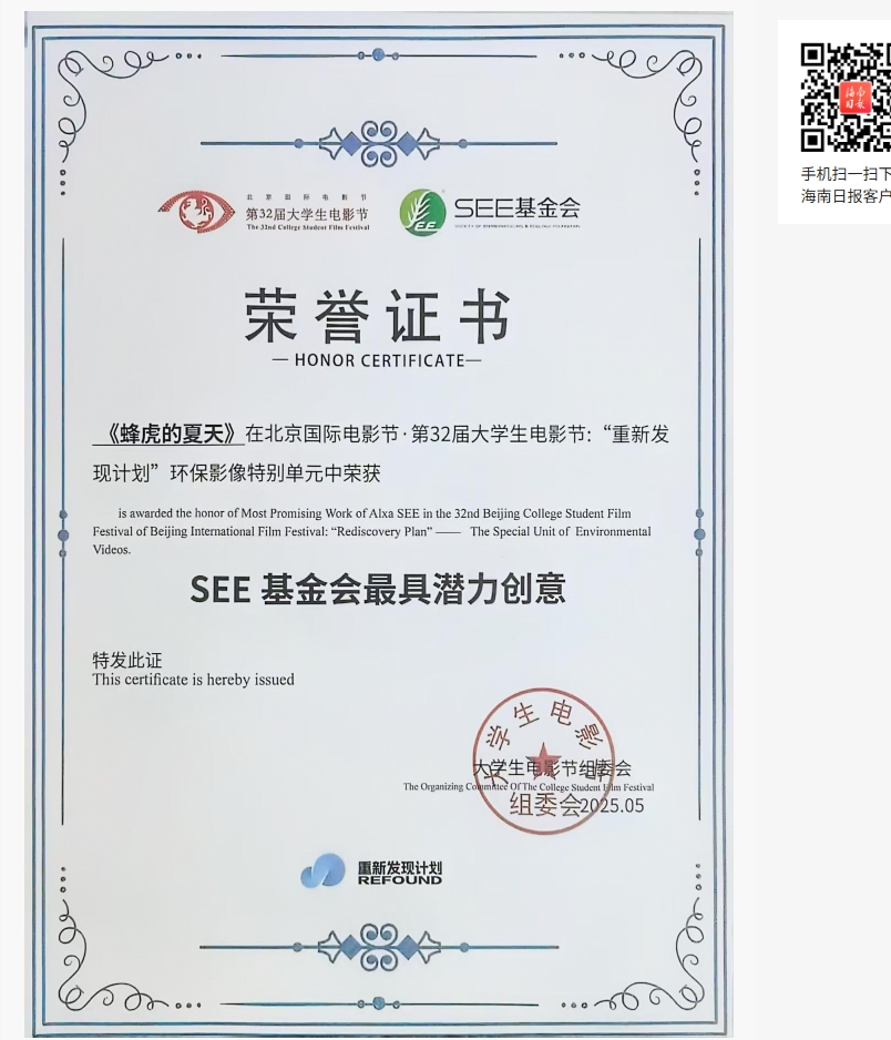 祝贺!海南学子在第32届大学生电影节中斩获奖项