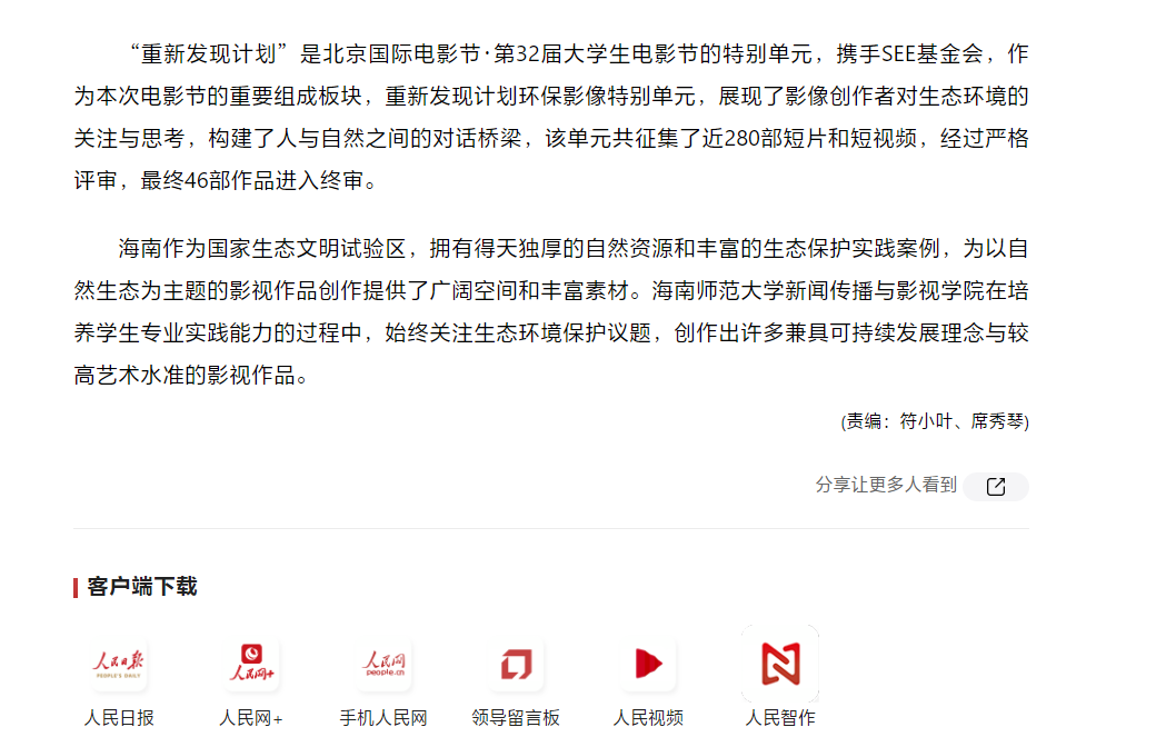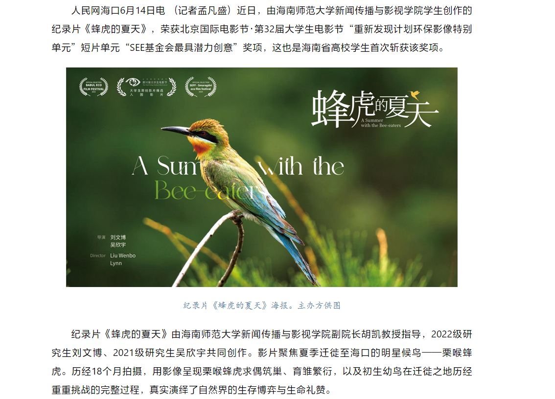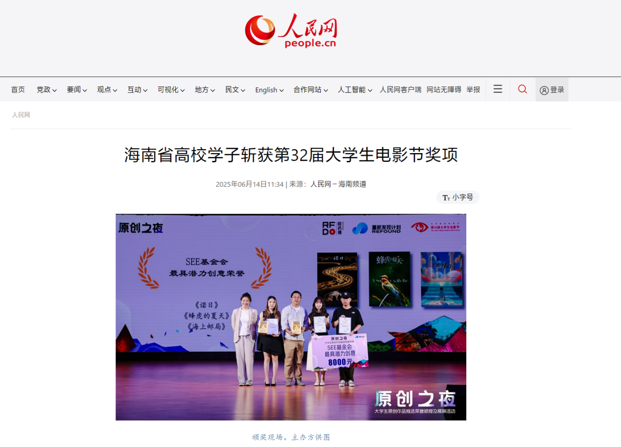 人民网报道我校|海南省高校学子斩获第32届大学生电影节奖
