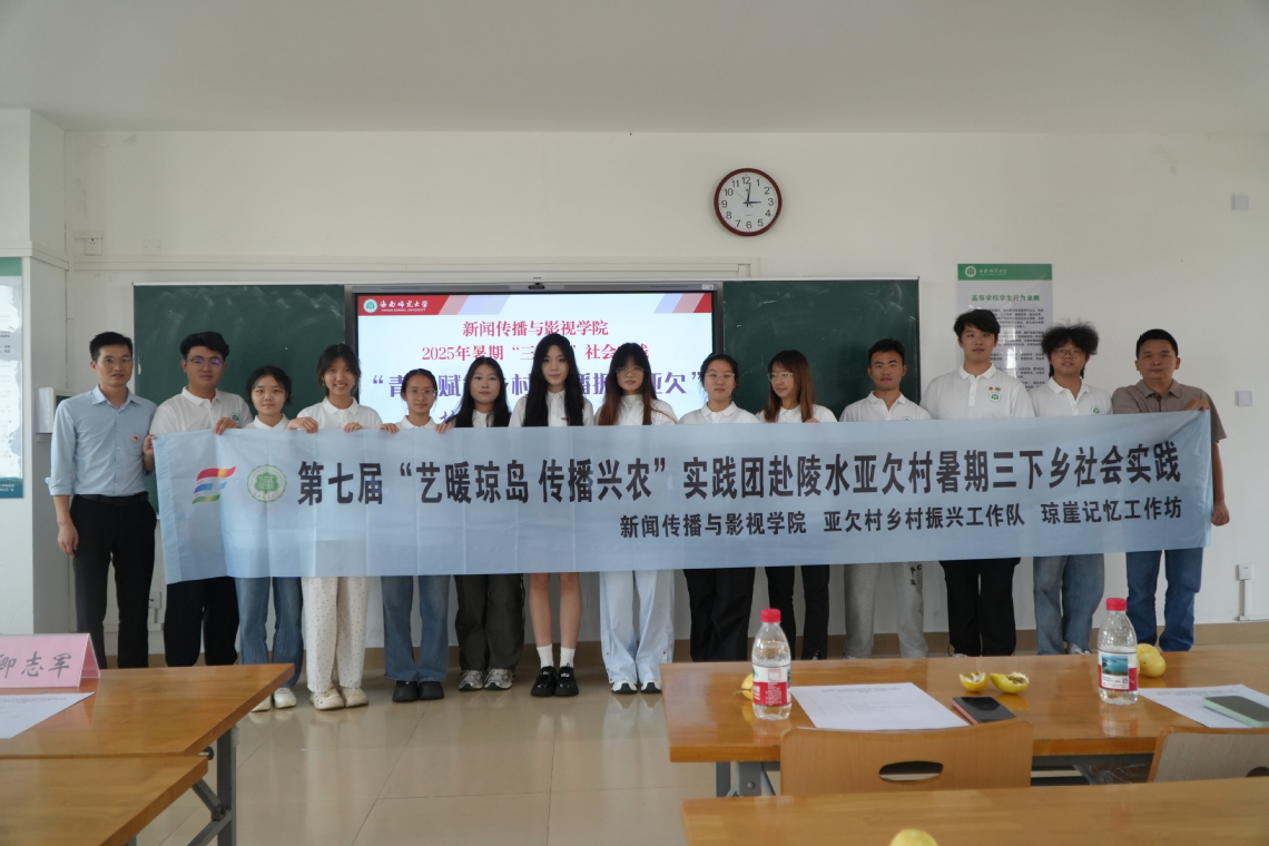 最后,全体成员身着统一实践服装合影并录制出征视频,第七届“艺暖琼岛|青春助力乡村·传播振兴亚欠”实践团正式启程。他们将以直播助农架设产销桥梁,用专业技能服务乡村所需,在陵水亚欠村的广阔天地中践行青春担当,为琼岛乡村振兴贡献海师青年力量。