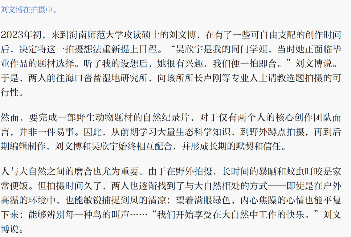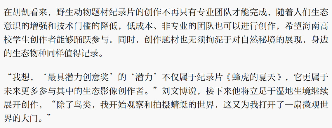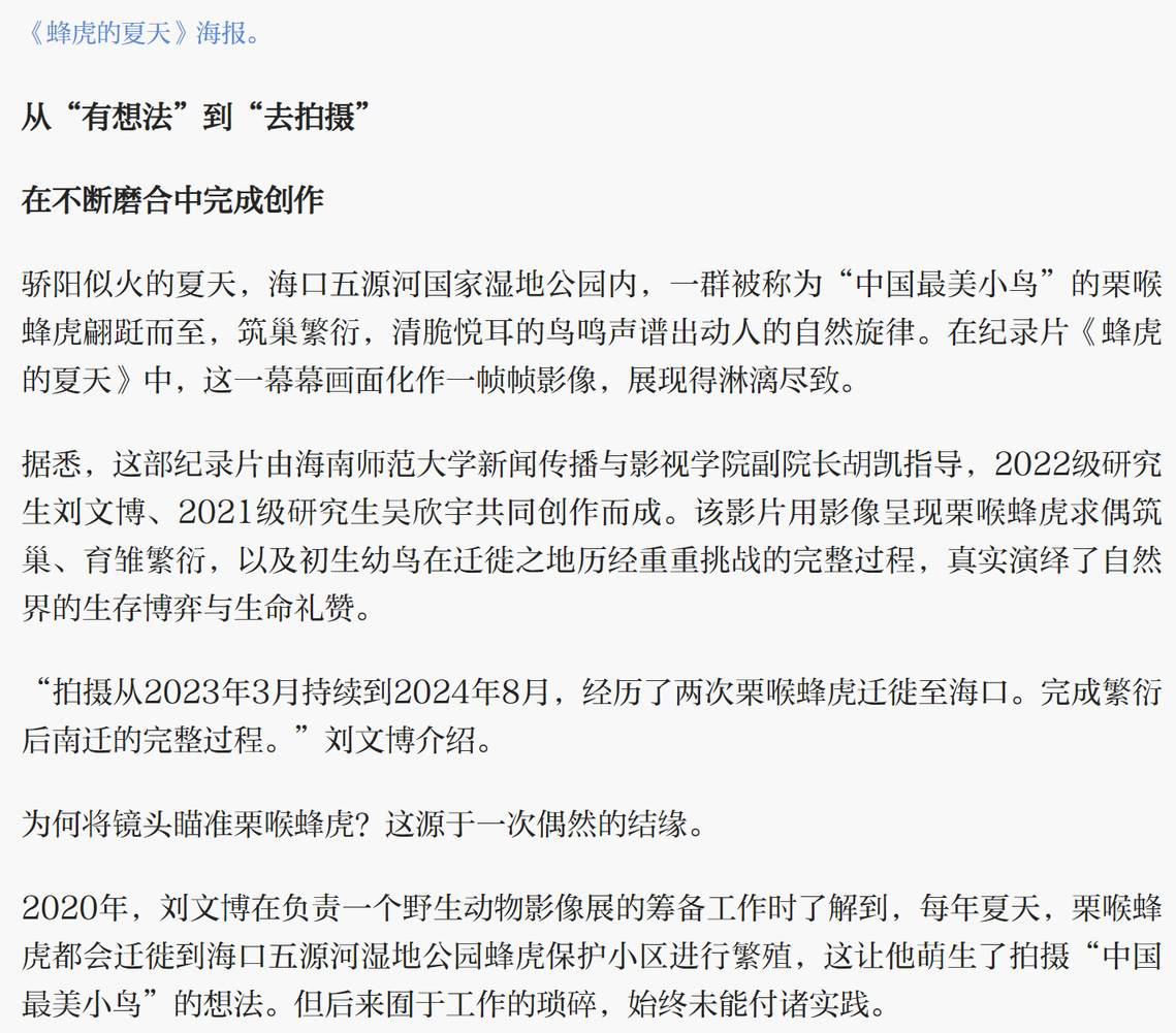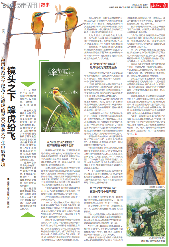 报道链接:海南周刊丨海南师范大学纪录片《蜂虎的夏天》
