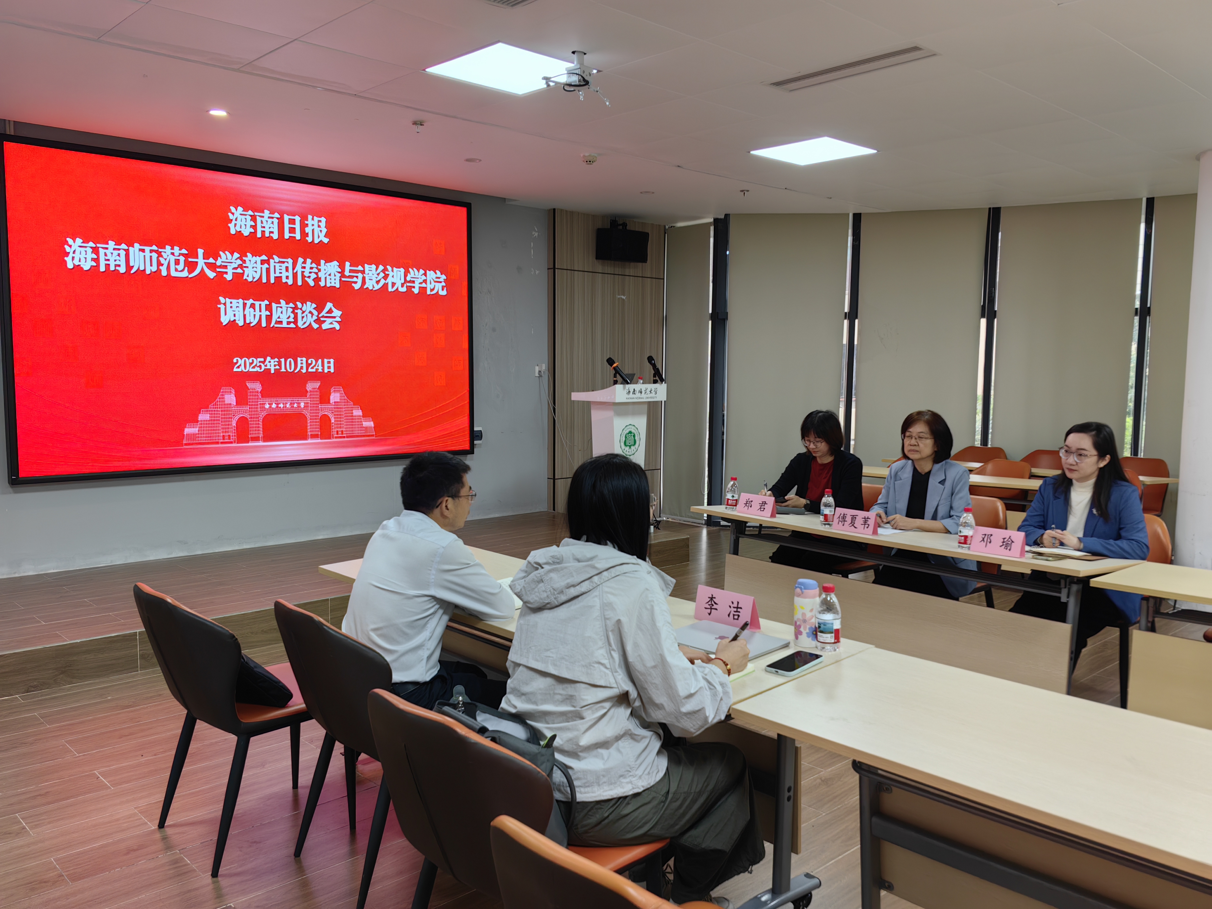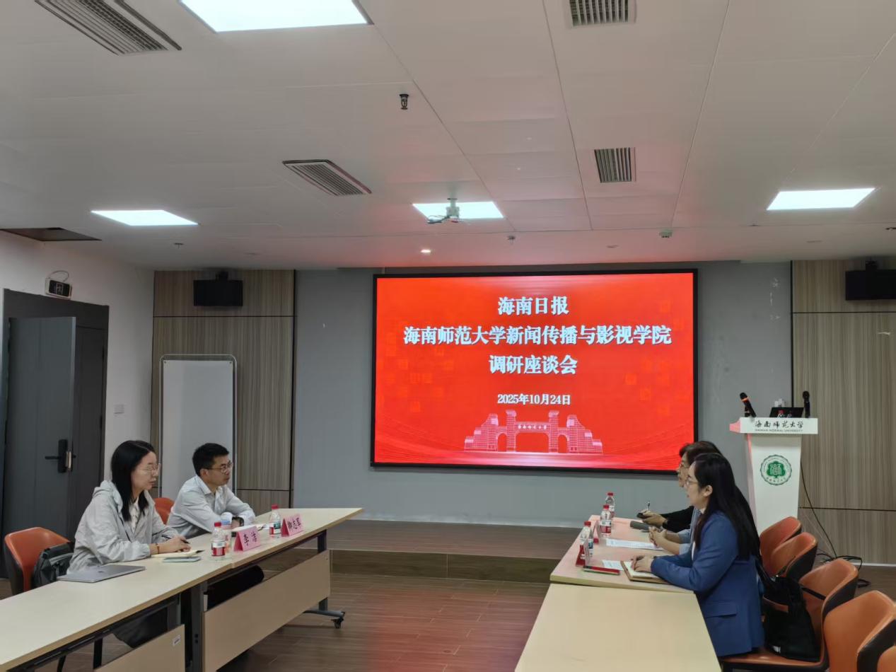 2025年10月24日,海南日报报业集团党委委员、副总编辑傅夏苇带队到我院就报社与学院的合作进行调研座谈。双方围绕国际传播学术研究、人才培养、产学研深度融合等议题展开深入交流。