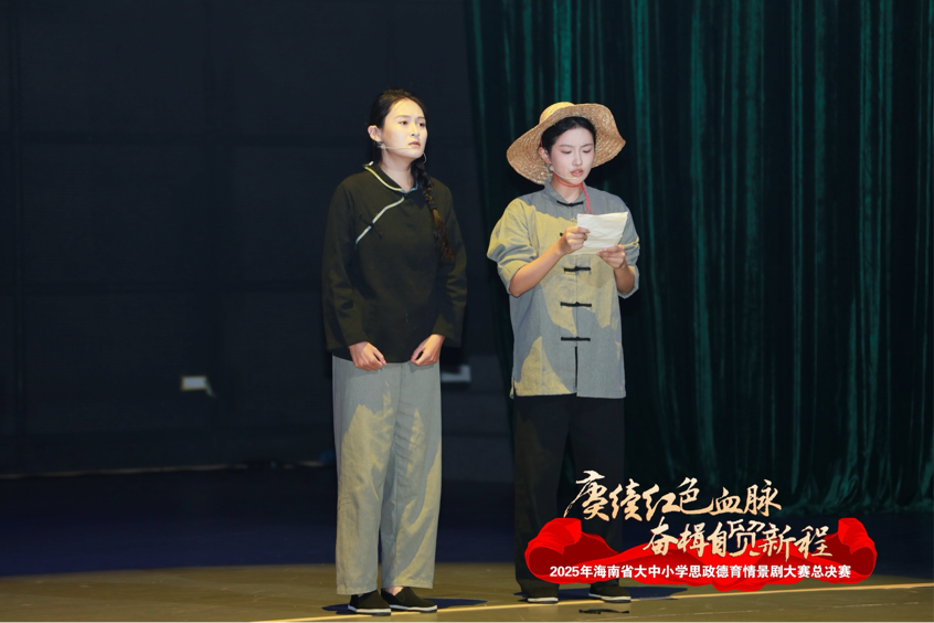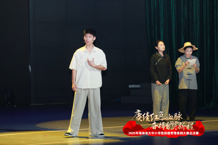 2025年10月26日,2025年海南省大中小学思政德育情景剧大赛总决赛(高校组)在琼台师范学院圆满落幕。我院赵旭老师执导、2023级表演班臧伯威、李涵、范世杰、滕浩然、彭续涵、马晓奕、司怡璇同学共同演绎的情景剧作品《留客渡》,在全省高校中脱颖而出,一举斩获一等奖!