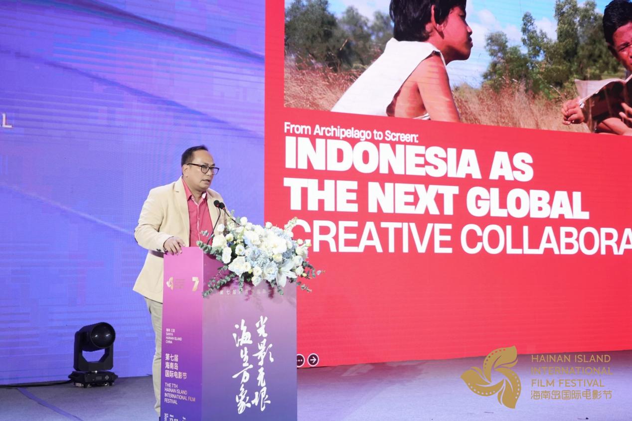 主旨演讲环节由海南师范大学新闻传播与影视学院副院长李楠主持召开,8位中外嘉宾围绕区域影视合作、人才培养、文化认同等议题分享真知灼见。印尼文化部电影音乐艺术司司长斯艾福拉赫以《从群岛到荧幕:印度尼西亚——全球创意合作新伙伴》为题,介绍了印尼影视产业的发展潜力与合作机遇。