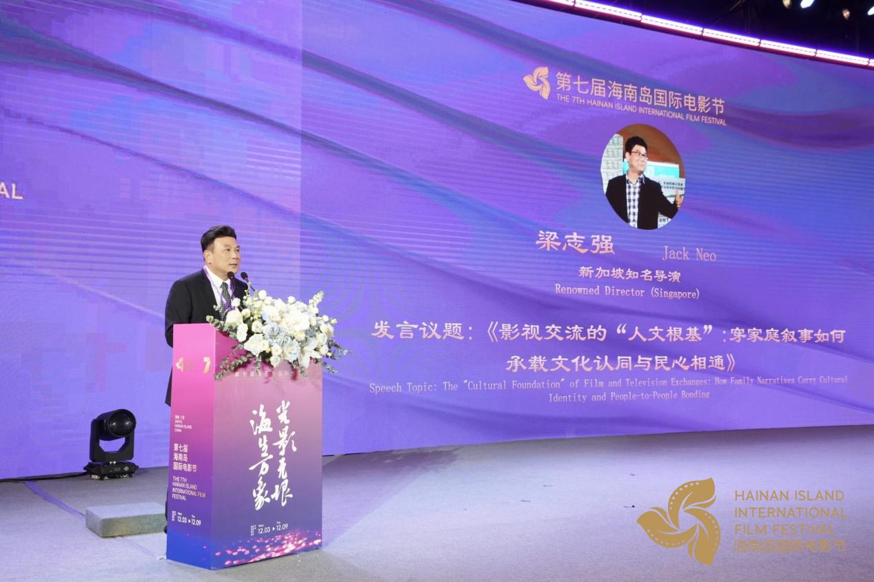 新加坡知名导演梁志强以《影视交流的“人文根基”:家庭叙事如何承载文化认同与民心相通》为题,结合自身40部电影创作经验,阐释家庭叙事是影视交流的坚实根基,能跨越文化差异引发共鸣。