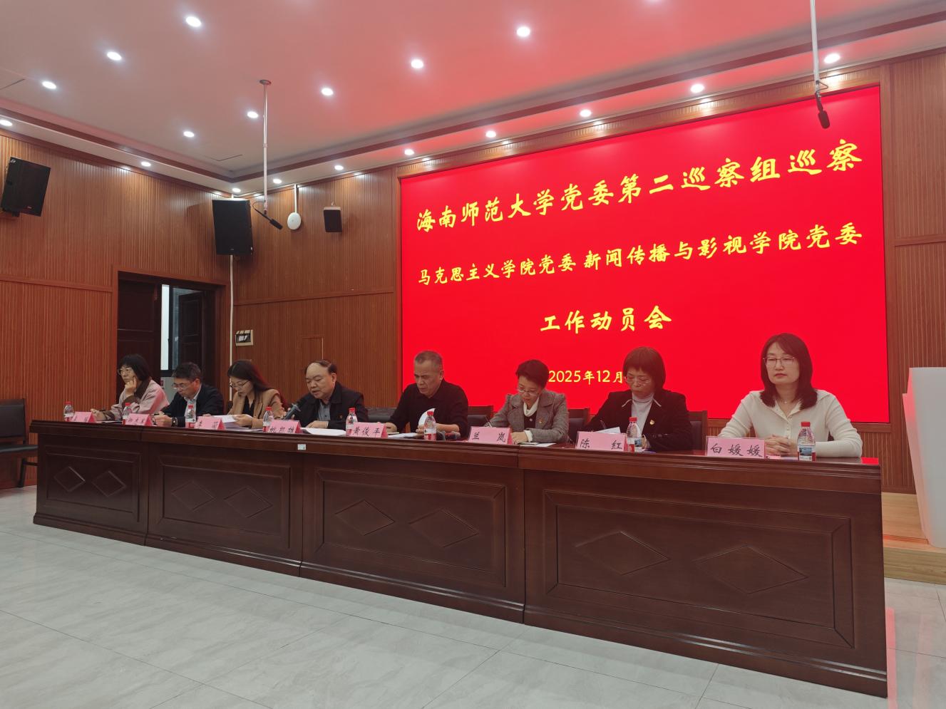 根据学校党委关于第五轮巡察工作的统一部署,12月10日下午,学校党委第二巡察组进驻新闻传播与影视学院党委工作动员大会在在桂林洋校区马克思主义学院二楼会议室召开。校党委巡察工作领导小组成员兼校党委巡察工作办公室主任黄俊平、校党委第二巡察组组长姚凯雄及巡察组全体人员、学院党政领导班子成员、全体教职工参加会议。会议由学院党委书记李蔺主持。
