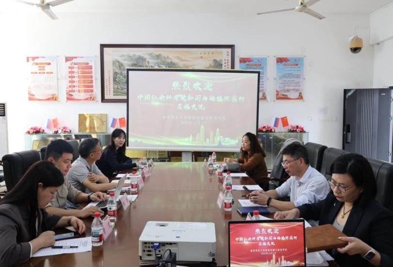 首先,罗璠介绍了我校东南亚研究院的基本情况,并通过此机构加强与东南亚的文化交流与合作。他明确指出,海南自由贸易港封关运作在即,自贸港形象构建与国际传播是区域软实力建设的核心支撑,也是双方未来合作的重点方向,希望中国社会科学院新闻与传播研究所能与我校聚焦该领域深化协作,共同助力自贸港国际影响力提升。