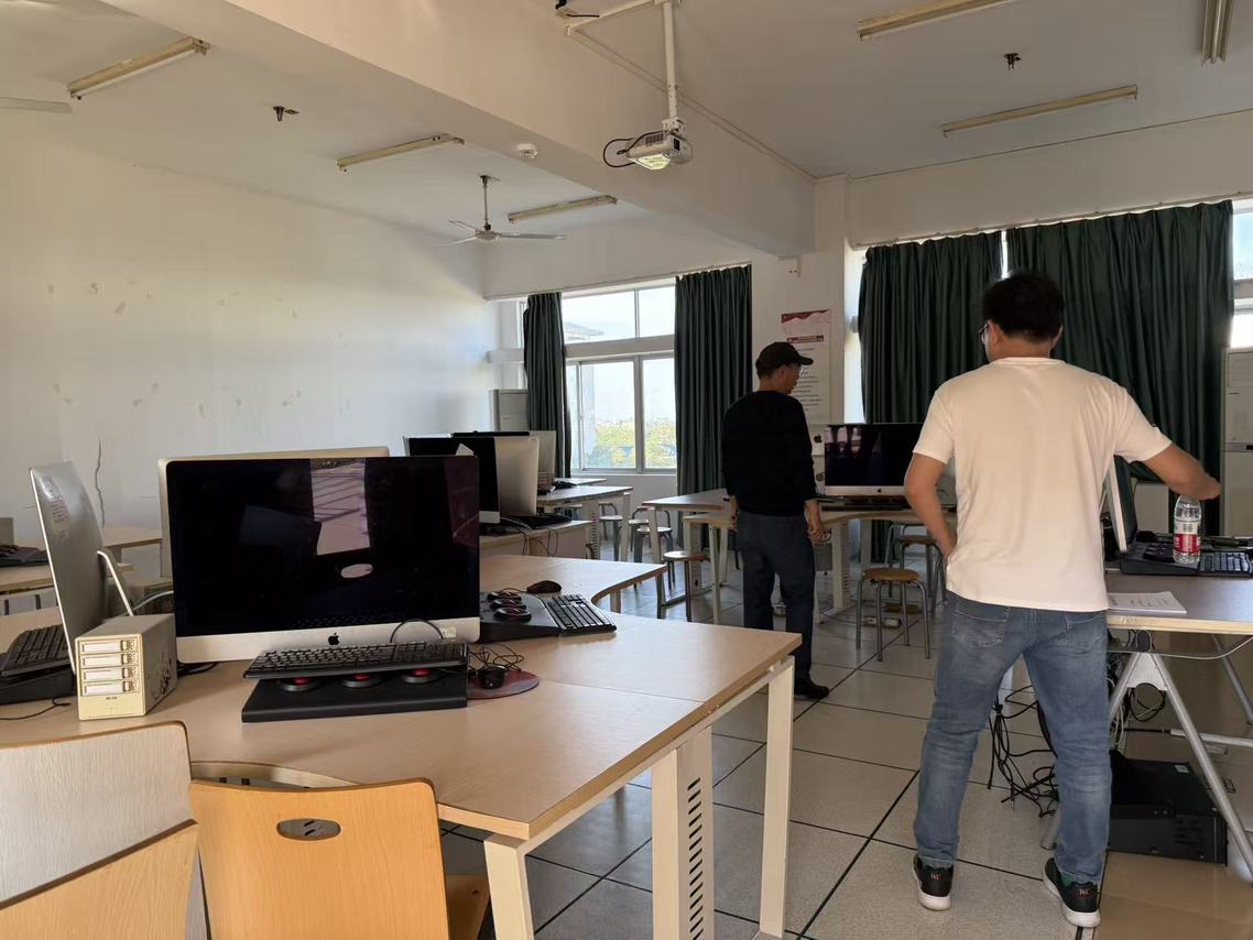 学院实验室老师吕永、龙志飞一行先后到达芬奇编辑机房、虚拟演播室、交互式演播厅等实验室,对实验器材、电路、门窗、卫生等方面进行全方位、覆盖式检查,检查设备器材完好性,检查防火、防爆、防盗、防事故等消防、安全措施执行情况,对存在的安全隐患进行登记上报。