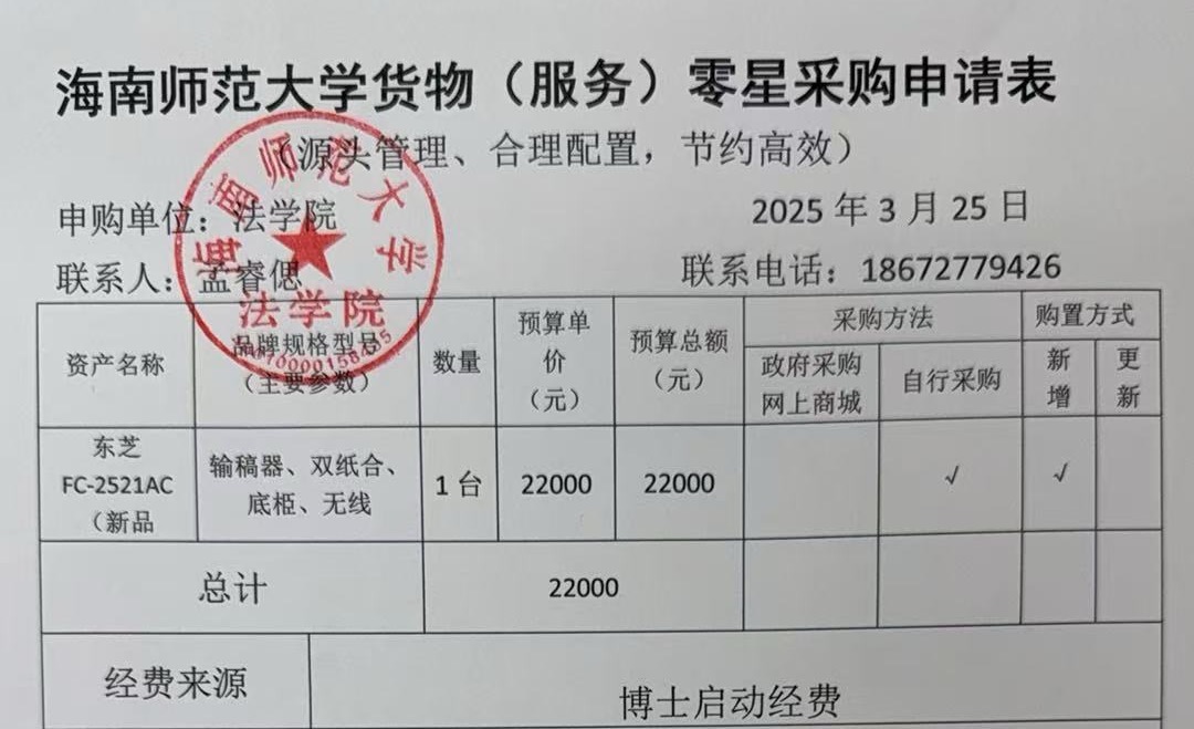 关于孟睿偲老师购买东芝FC-2521AC(新品)的公示