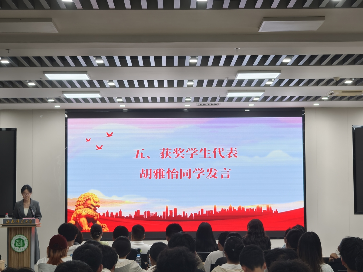 获奖学生代表胡雅怡向学院领导、老师以及四川辞鉴(海口)律师事务所表达了衷心感谢。她分享了自己的学习成长经验,并号召同学们保持热爱,不畏困难,勇敢前行。