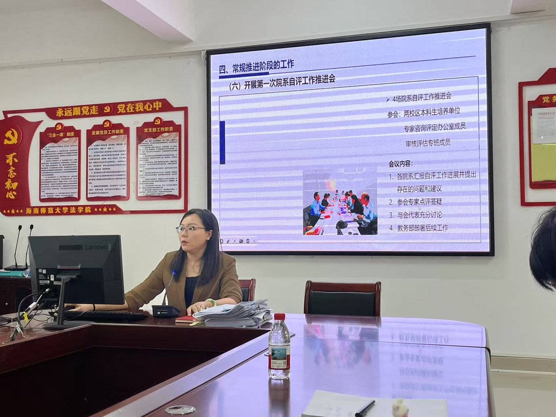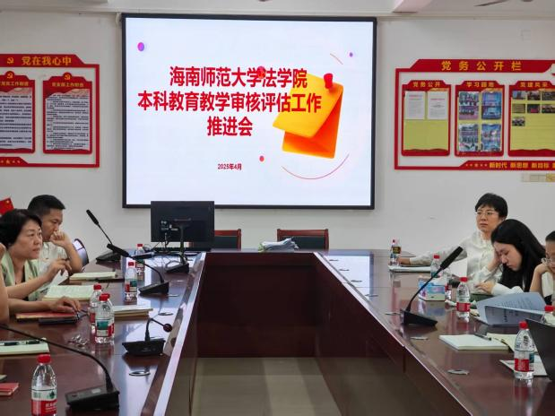 为深入贯彻落实新时代全国高校本科教育工作会议精神,扎实推进本科教育教学审核评估迎评工作,全面提升人才培养质量,海南师范大学法学院于2025年4月15日在学院会议室专场召开本科教育教学审核评估工作推进会。学院领导班子成员、各教研室主任、教学督导、教师代表及教学管理人员参加会议,会议由法学院教学副院长唐欣瑜主持。