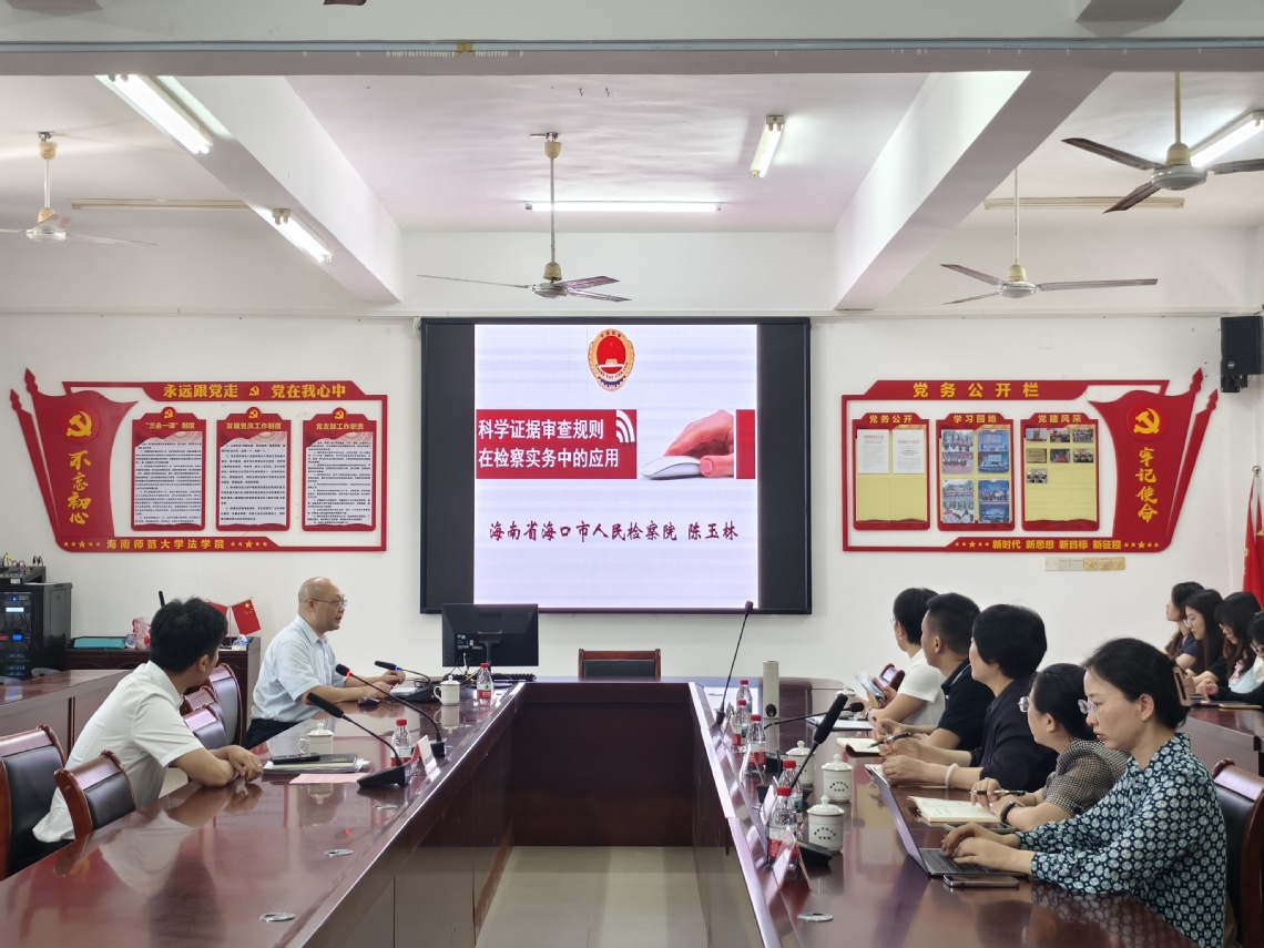 为推动理论与实务融合,拓展专业视野,提升学生素质,法学院于4月24日下午在桂林洋校区第一公共楼323会议室举行了《科学证据审查规则在检察实务中的应用》学术交流活动。校党委常委、副校长张引主持,海口市人民检察院党组成员、副检察长、三级高级检察官陈玉林主讲,法学院院长张霞教授、副院长周兆进副教授、顾晓娟博士、张晓萍博士、关丹丹博士以及2022级、2023级学生代表参加活动。