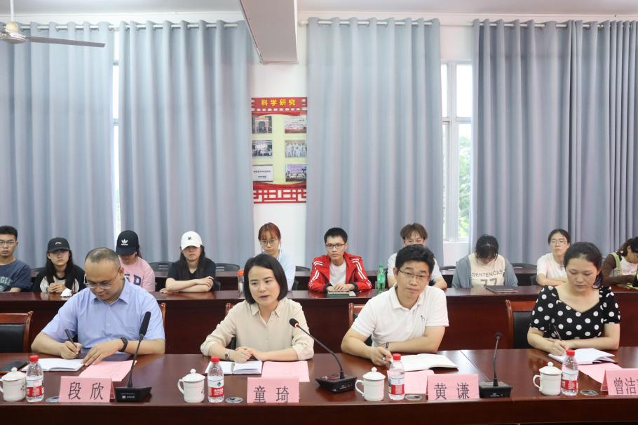 黄谦副院长向同学们介绍了秀英法院招收实习生的相关要求和待遇,以及书记员的聘用事宜,鼓励同学们尽早以实习的方式探索个人职业规划,将课本知识在案件中进行实际运用。段欣副院长以法院招聘过程的实际案例强调了积累实习经验的重要性。李秋花书记充分肯定了毕业实习对提升学生实践能力的重要性,感谢秀英法院对我院学生毕业实习和就业工作的大力支持。禤丽琴老师鼓励同学们以学习的心态去实习,勇于面对困难、克服困难,在实践中学真本领。