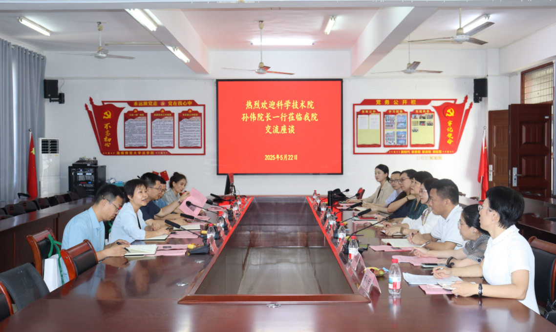 5月22日上午,海南师范大学科学技术院孙伟院长一行莅临法学院,双方就法学院教师申报自然科学类项目等相关科研工作开展座谈交流。科学技术院院长孙伟,副院长谢琼涛、丁利、杨爱利,科研项目管理科副科长许雅婷,法学院院长张霞,正处级辅导员李秋花,副院长唐欣瑜、周兆进、宋寒亮,专任教师关丹丹、顾小娟、李雪等人出席座谈会。