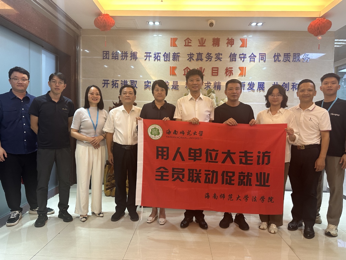 为进一步深化校企合作、强化供需对接,2025年6月16日下午,海南师范大学副校长张引教授率法学院、数学与统计学院、美术学院相关负责人及教师代表,先后赴屯昌县教育局、海南盛腾建筑安装工程有限公司开展“访企拓岗促就业”专项行动。法学院院长张霞、张红昌教授、辅导员朱梦飞全程参与本次活动。