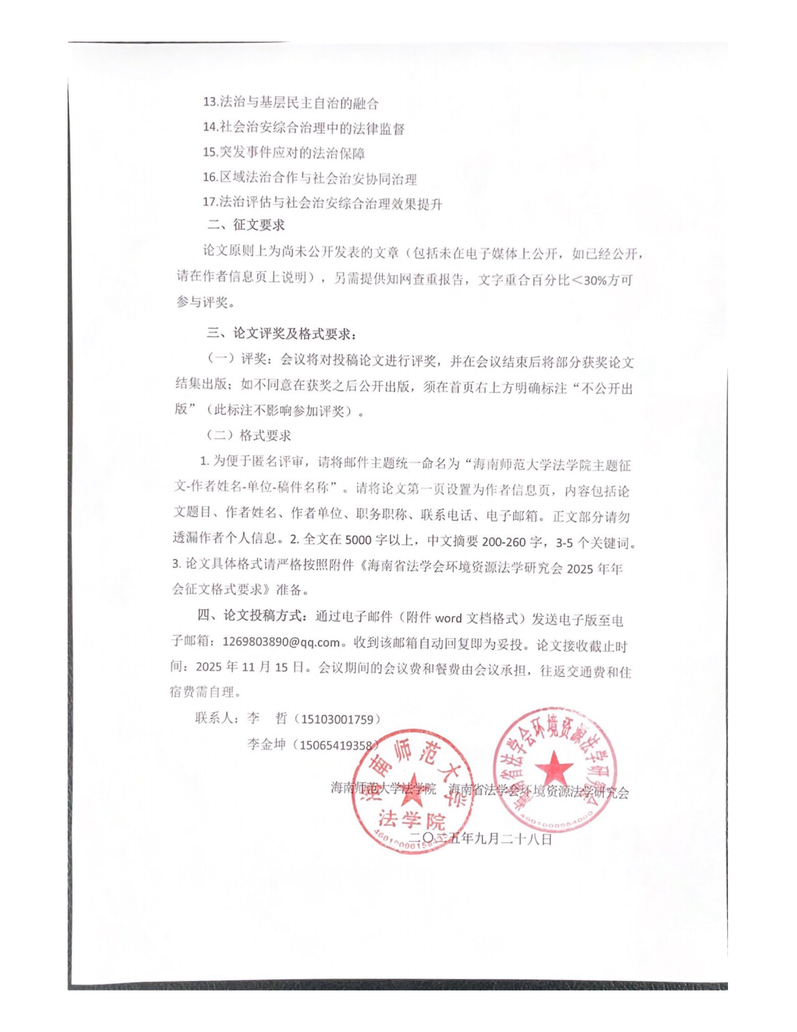 关于开展海南省法学会环境资源法学研究会2025 年年会征文的通知