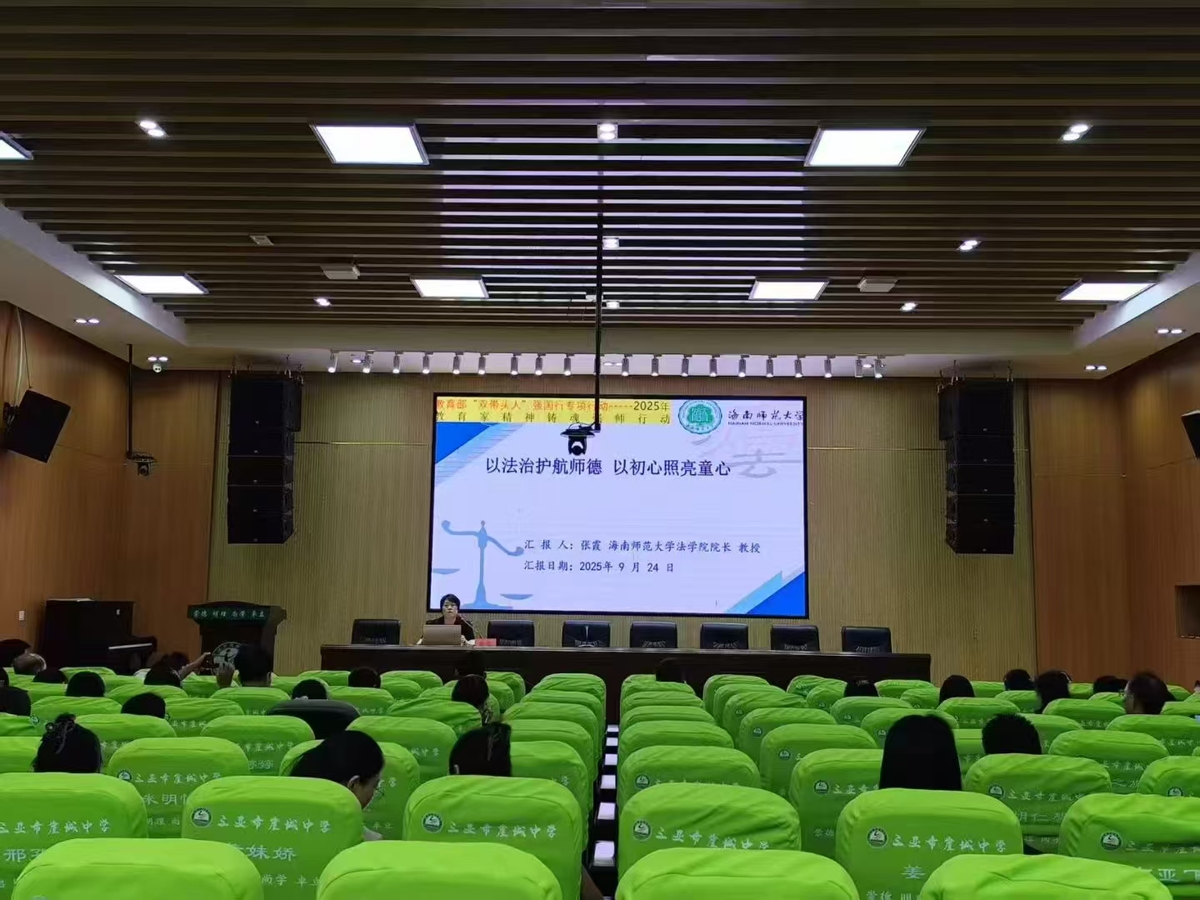 在第39个教师节的温馨氛围尚未消散之际,为进一步夯实崖州区教师队伍的师德师风建设根基,筑牢教育领域的法治防线,9月24日,崖州区“文明门下大讲堂”第7期宣讲活动如期举行。本次活动特邀我院法学教授张霞主讲,以“以法治护航师德 以初心照亮童心”为核心主题,为全区百余位中小学教师带来了一场兼具理论深度与实践指导意义的授课。