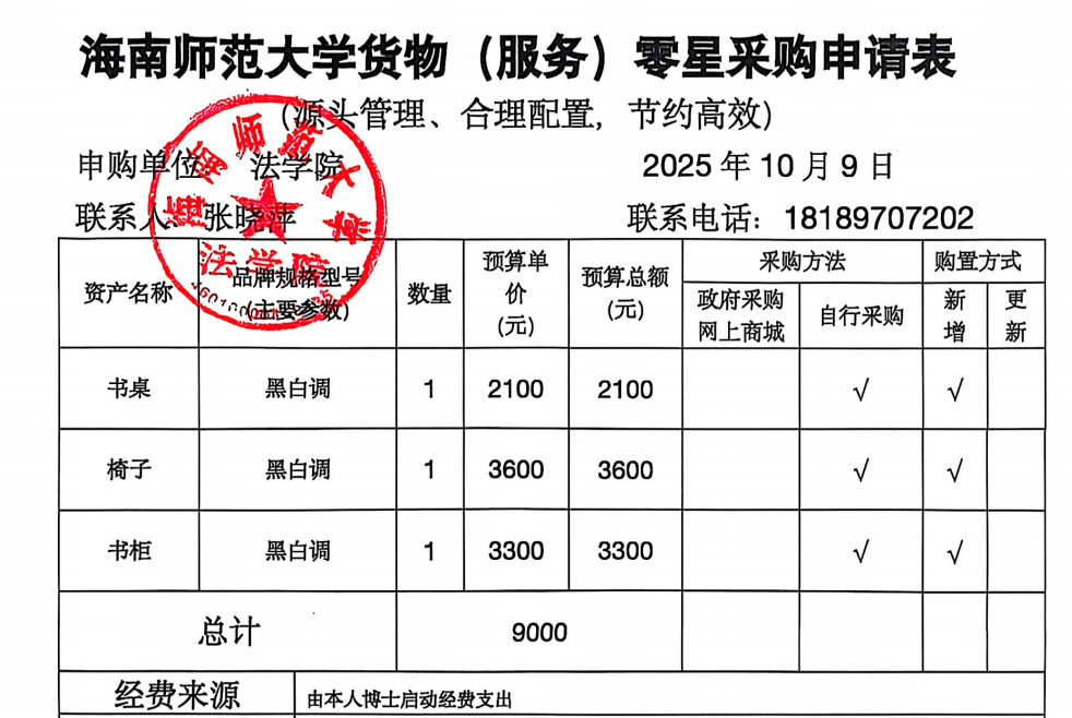 关于张晓萍老师购买书桌、椅子、书柜的公示