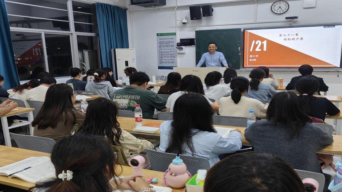 为切实呈现海南师范大学本科教学水准,提高教师教学质量,学校教学督导团队与法学院精心筹备了校院联动示范课观摩研讨活动。此次活动挑选了法学院具有代表性的课程予以展示,充分发挥优秀教师的示范引领效能。10月28日第9节课,在校教学专职督导陈海燕教授、唐若玲教授的指导下,法学院院长张霞、教学副院长唐欣瑜以及青年骨干教师黎东铭博士、吴丰博士参与课堂观摩,并进行了深入的交流学习。