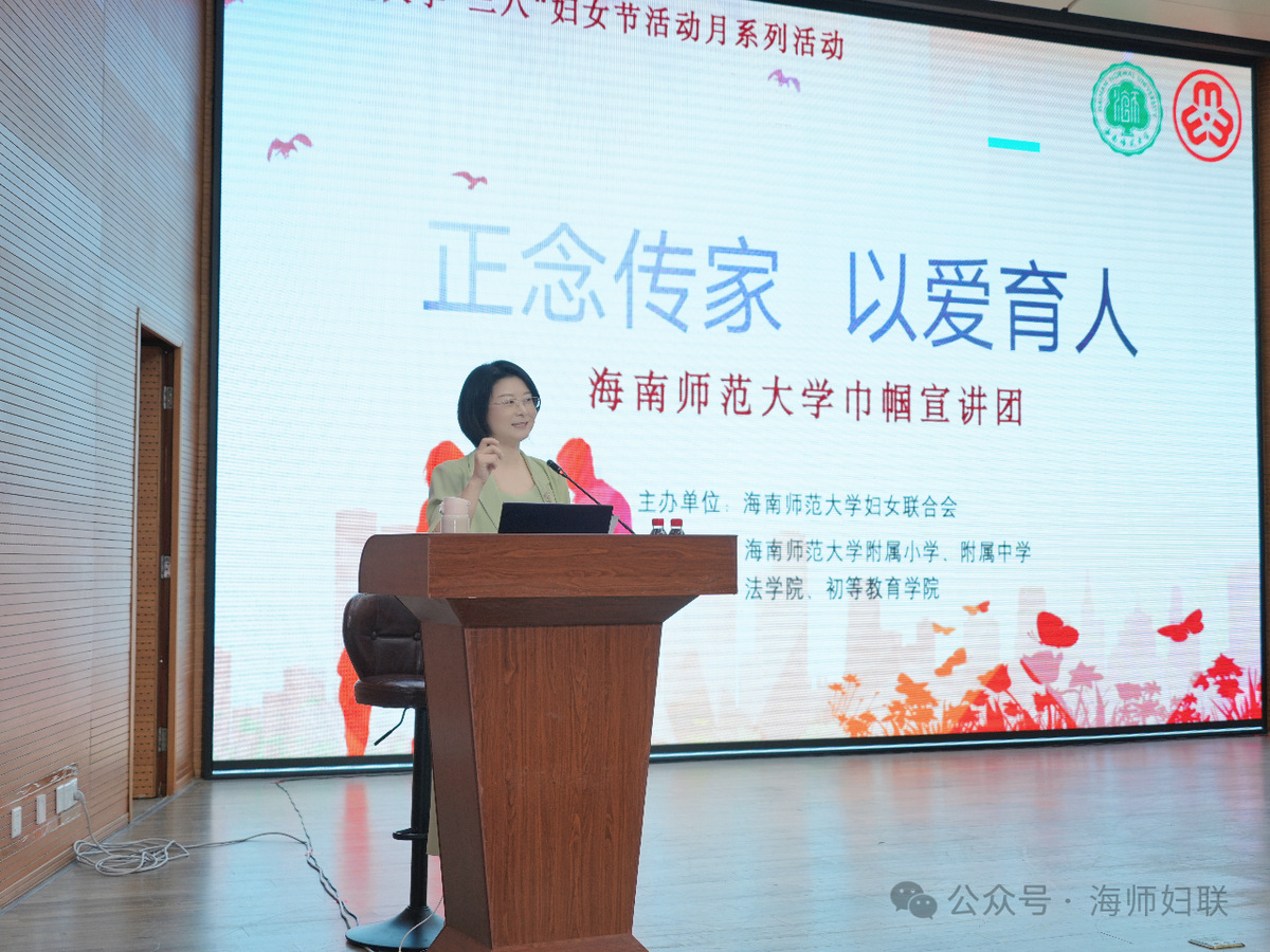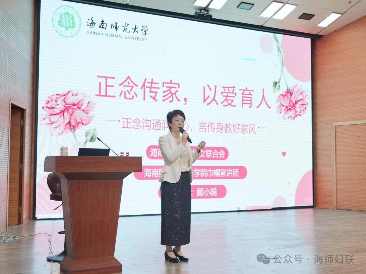 - 我院顾小娟老师代表海南师范大学巾帼宣讲团作“正念传家,以爱育人——正念沟通破解亲子困境,培育优良家风”主题宣讲
