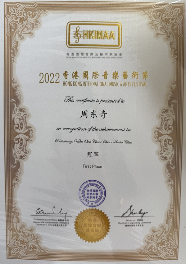 获2022香港国际音乐艺术节冠军