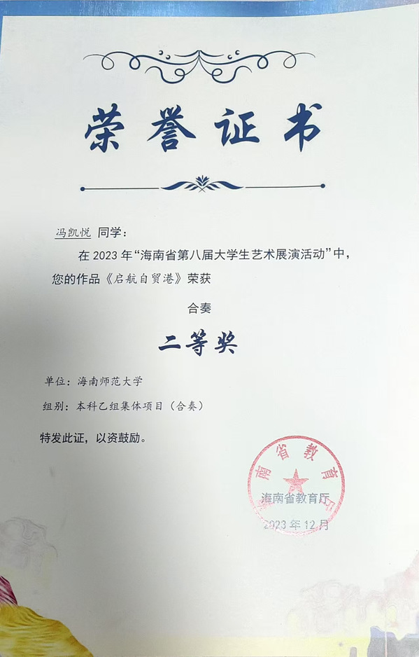 (4)2023年12月获第十四届管弦乐、打击乐专业组第三名