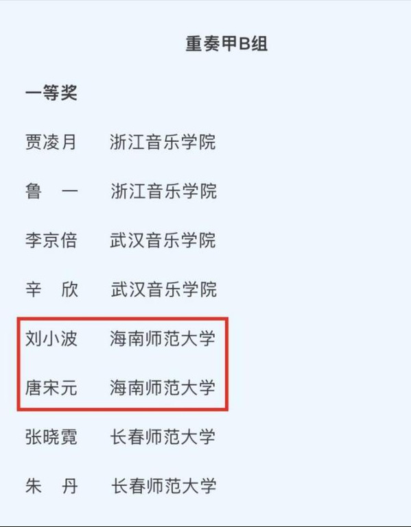 经过现场激烈角逐,我校音乐学院青年教师唐宋元、刘小波共同演绎的双钢琴作品,荣获重奏甲B组一等奖;鲁禹君与广西艺术学院教师共同演绎的四手联弹作品,荣获重奏甲B组二等奖;唐宋元演绎的独奏作品,荣获独奏甲B组三等奖。参与此次活动,不仅锤炼了教师的专业素养与舞台实践能力,更集中体现了我校钢琴教师队伍的专业实力。