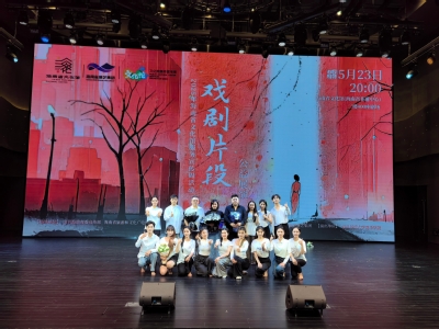 2025年5月23日(周五),由我院董德老师担任指导教师,13位硕士研究生为演员,入选海南省文化馆服务宣传周戏剧片段公益展演成功上演。演出当晚,海南省文化馆400座剧场热情高涨,海南省文化馆陈虹霓馆长、海口广播电视台综合文艺部陈雪峰主任、海南省青联常委温晓红、音乐学院赵玺昌院长、周怡副院长等领导及众多师生亲临现场观看。此次展演为海南师范大学音乐学院《戏剧舞台表演基础》课程的教学成果展示。该课程面向全院硕士研究生开设,历时8周,共计32课时,通过理论与实践结合的教学模式,帮助学生提升表演技能。