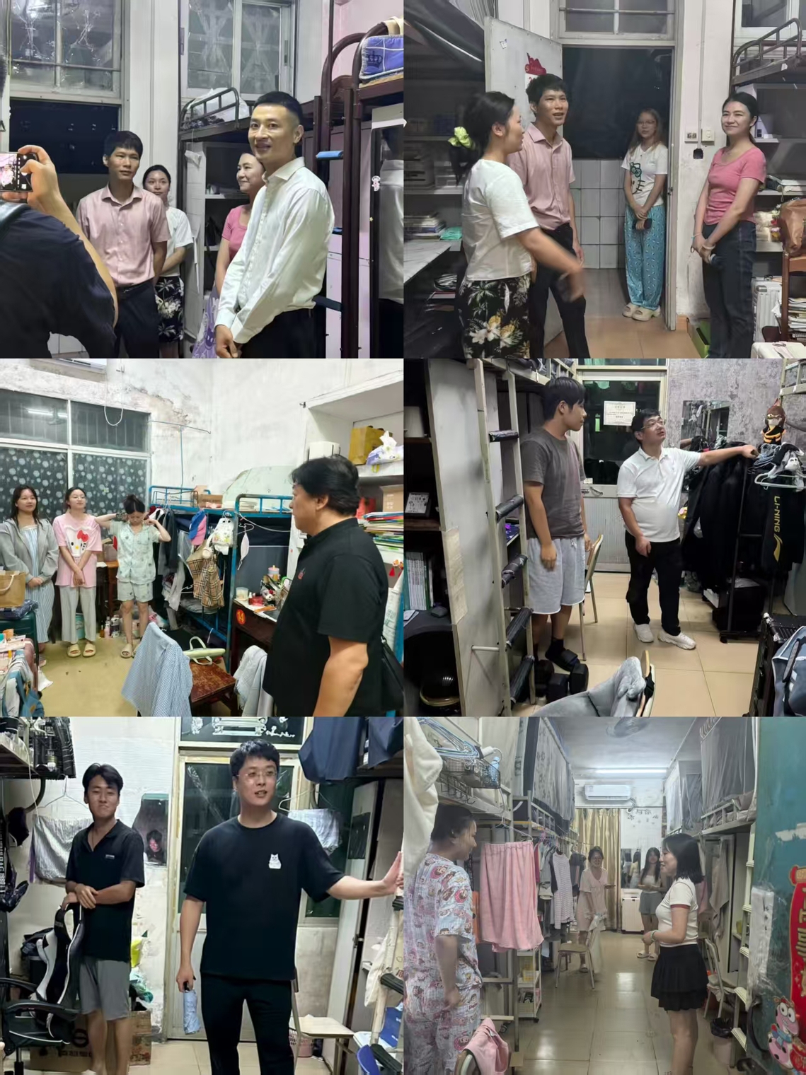 新学期开始,为深入了解学生返校后的思想动态与生活适应情况,传递学院关怀,确保新学期各项工作有序开展,9月7日晚,音乐学院党委书记秦子文、院长赵玺昌、党委副书记于文涛、班主任及全体辅导员一同深入学生宿舍,走访慰问音乐学院学生,为大家送上贴心的问候与关怀。