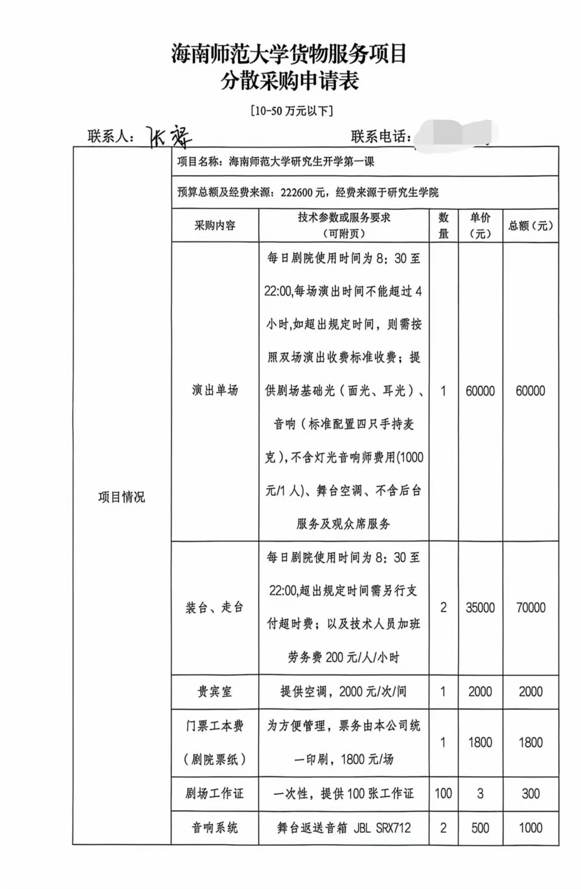 海南师范大学货物服务项目分散采购申请表