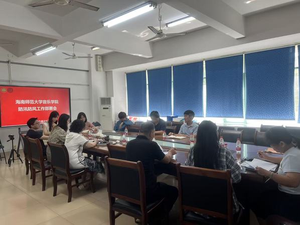 音乐学院积极响应海南气象局发布的预警,于9月23日上午,召开防汛防风工作部署会,分析研判台风“桦加沙”发展态势,部署防御应对工作。会议由院党委书记秦子文、院长赵玺昌主持、学院党政班子成员、行政办、教务办、学工办工作人员参会。