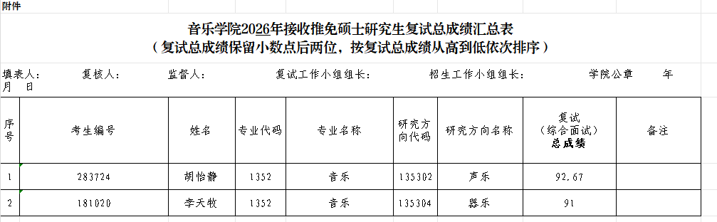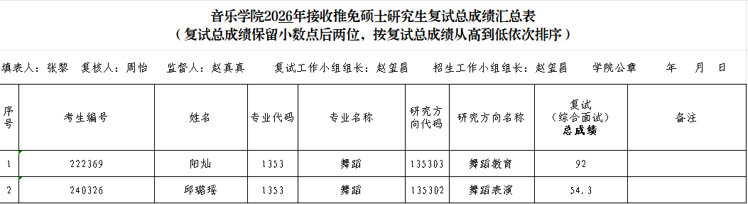 音乐学院2026年接收推免硕士研究生复试总成绩(第二批)